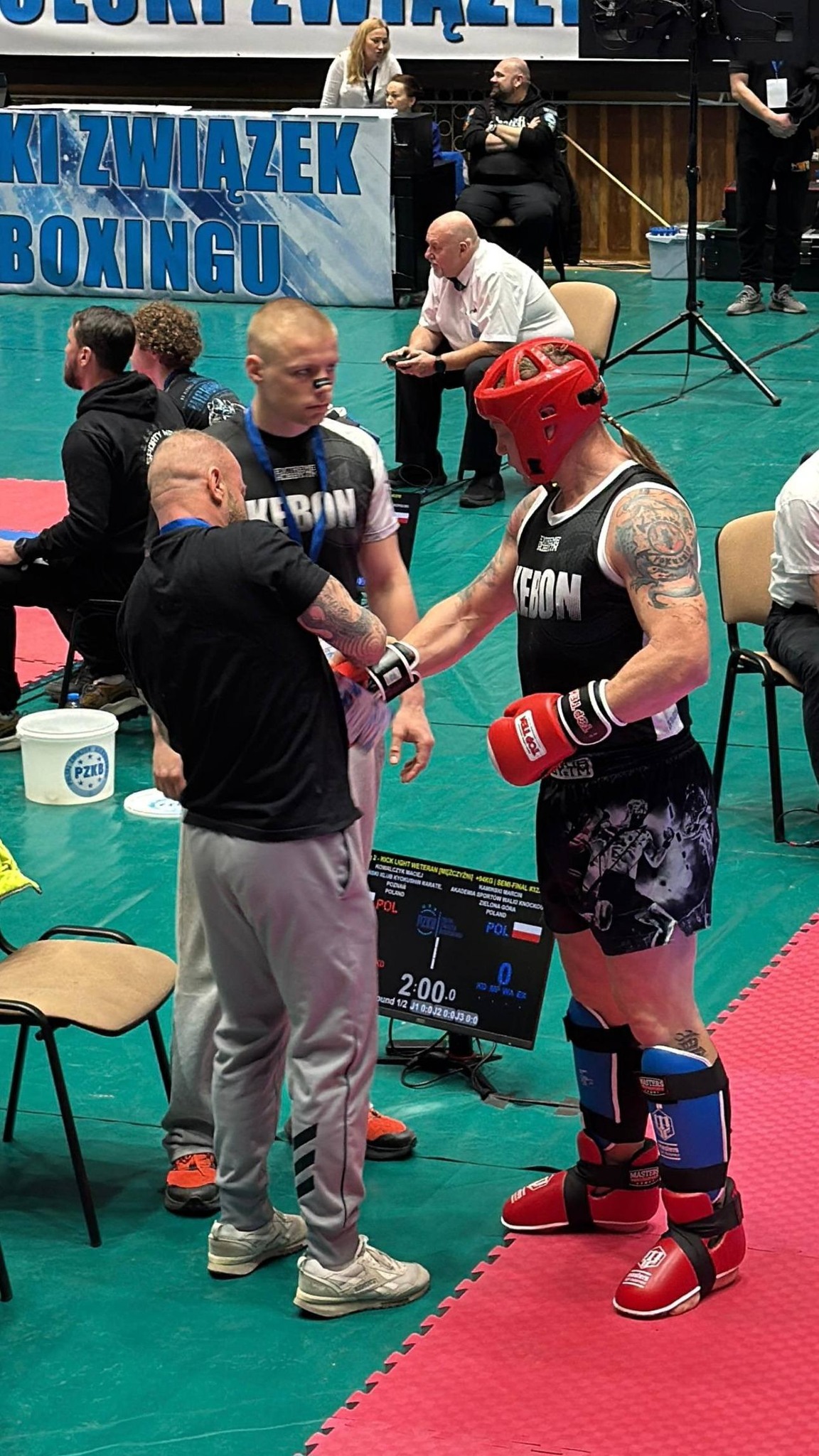Do startu w zawodach namówił sensei Macieja jego syn, Aleksander, który na co dzień trenuje właśnie kickboxing, i który czasami prowadzi w naszym klubie treningi kickbokserskie. W przygotowaniach do zawodów pomagała mu ekipa z KS Kebon — oprócz wspomnianego Aleksandra Kowalczyka, również Michał Pytel i Maurycy Janiak. Nie mniej ważny w odniesieniu zwycięstwa był dla sensei Macieja doping małżonki, sensei Nataszy.